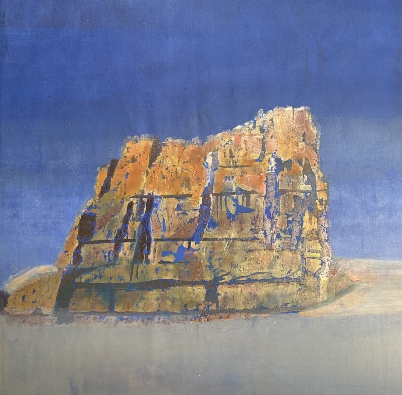 This work depicts the “Devil’s Pulpit”, a peak in the Sierra Nevada del Cocuy mountain range in Colombia. Summits like this one which are more than 5600 meters tall are sacred for the U’wa people because they are the dominion of immortal beings in their mythology. The U’wa narrate their sung myths in ceremonies and celebrations of many hours. One of them is the Aya myth of the creation of the world which evokes Sira and Baukara. Sira, which translates to light, creates the world with his thought and gives origin to the heat of the sun and the water of lakes to generate life. Baukara is a feminine deity creator of the uteri of mother earth where life was born: lakes.